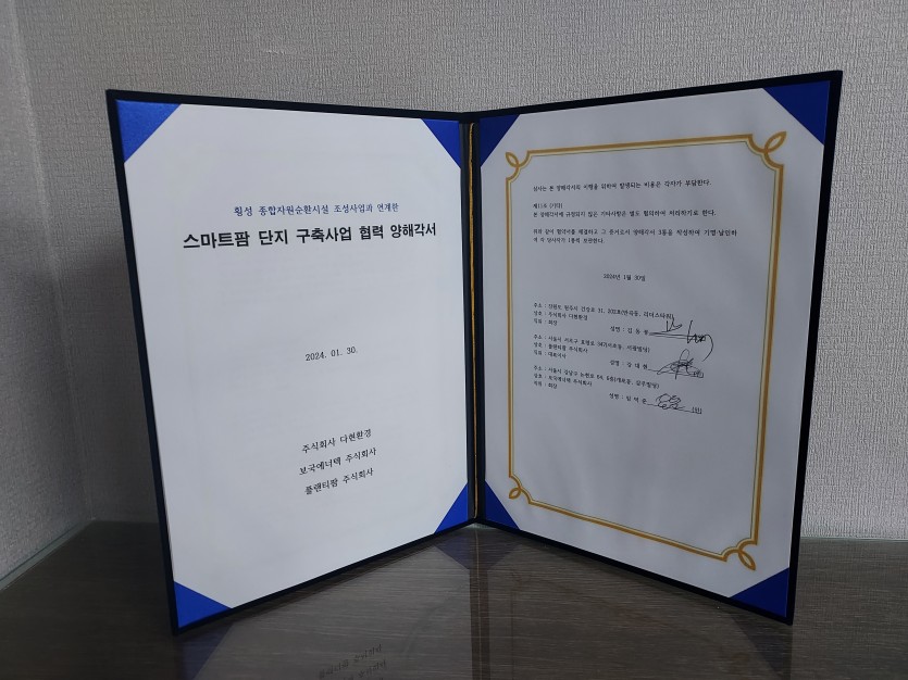 24.01.30(화) 횡성 종합자원순환시설 조성사업과 연계한 "스마타팜 단지 구축사업 협력 양해각서" 체결 - (주)다현환경,보국에너텍(주),플랜티팜(주)
